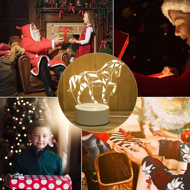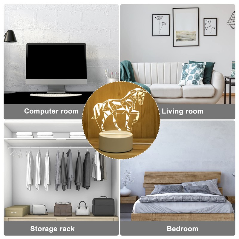 Toyandona Animal Night Light 3D Horse Illusion USB Lamp Power LED Signals Decoration for Bedroom Living Room Office Desk Lamp