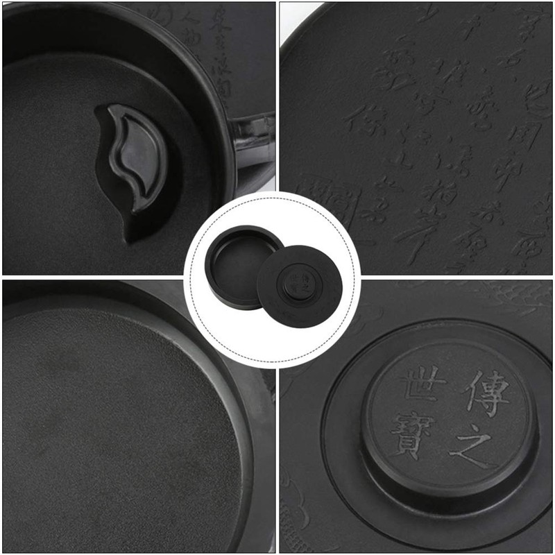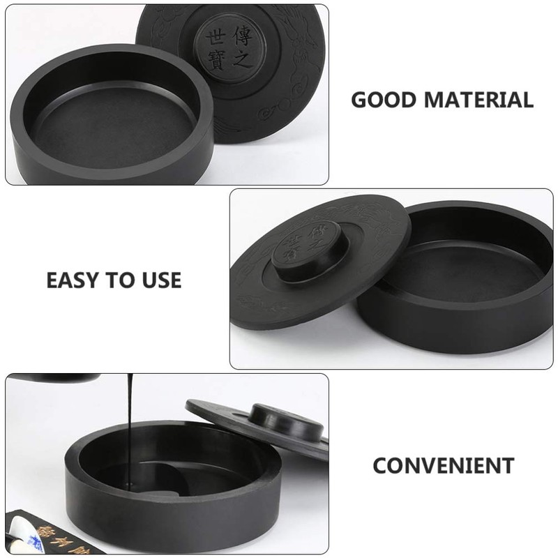 Made of high-quality imitation stone, this inkstone is safe and durable, featuring exquisite pattern and lid design, more fashionable and . It is an ink container for oriental writing and painting or drawing. Suitable for students, teachers, painting lovers, Chinese calligraphy lovers, etc.