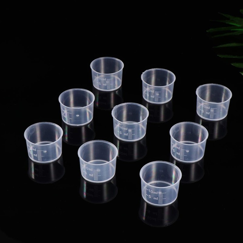 - ML Measuring Cup:Disposable Measuring Cups Set Pack of 100 Clear Plastic Measuring Cup 10ml Transparent Containers Thickened Measuring Cups for Mixing Paint.