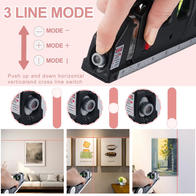 - Laser Guided Precision: Make Installation a Breeze with the Multifunctional Laser Level for picture hanging. Project horizontal, vertical, or cross laser lines with pinpoint accuracy, ensuring your wall decor is perfectly leveled. Featuring built in bubble levels, dual metric imperial scales, and a retractable tape measure, this ingenious tool takes the guesswork out of hanging pictures like a pro
