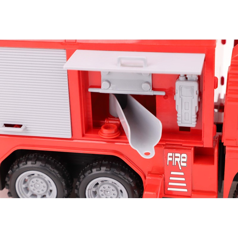 - The fire truck measures approximately 25cm long and comes with lots of accessories for the job! It also features slide open cabinets to pack all the tools for the job away into.