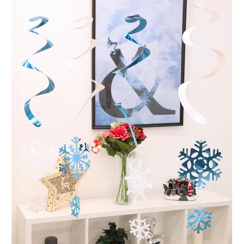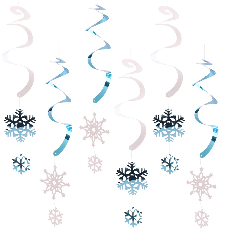 Toyland® Pack of 6 - White & Ice Blue Hanging Snowflake Swirls - Festive Christmas Decorations