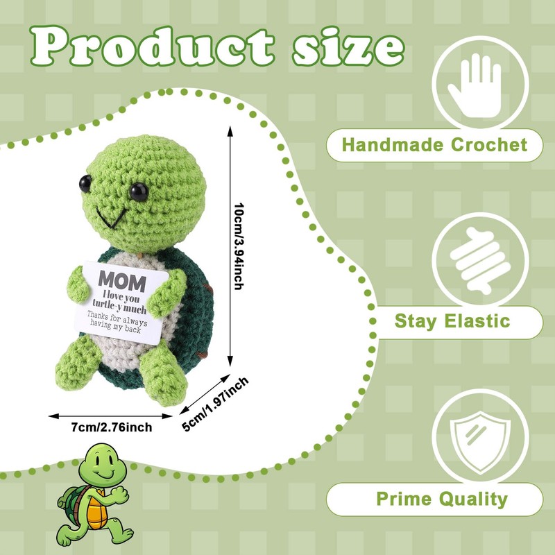 - Awesome Gift: This positive crochet turtle is an awesome gift for your motehr on mother’s day, which can show your care and love to your mom. It can accompany her when you are not availiable due to work or other business.