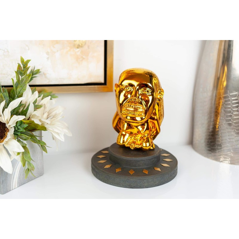 - WORRY FREE DISPLAYS WITH NO HIDDEN DANGERS: Unlike Indiana Jones, no traps will be sprung and no boulders will chase you while you're messing around with this Golden Idol and display base. Enjoy a quality Indiana Jones themed collectible without the dangers!