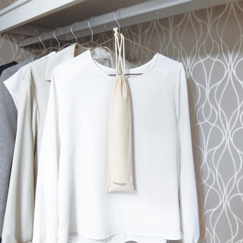 • Hang 1 or 2 of these items in your closet by hanging the drawstring bag on the hanger or pole