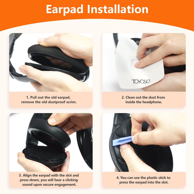- Complete Packaging: Your purchase includes a pair of ear pads, a pair of soundproof mats, a cleaning cloth, two crowbars, a triangle tool. We have a step-by-step video guide for hassle-free replacement, and a specially designed box for storing your replacement ear cushions when not in use.