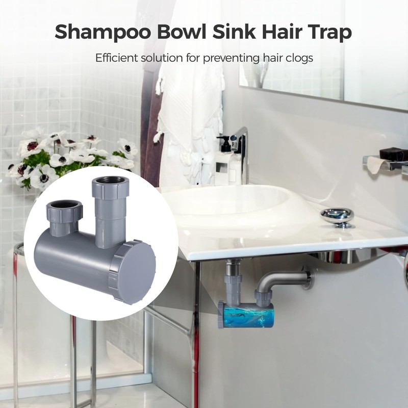 Toyosport Shampoo Bowl Sink Hair-P Trap, 1-1/2 in Sink Hair Cather for Bathroom Salon, Leakproof Seal, Removable End Cap, Easy Installation
