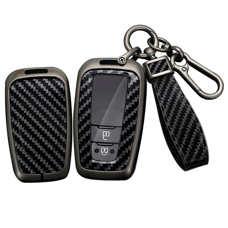 - 【High Quality Zinc Alloy Material】The key case is made of high quality zinc alloy + carbon pattern to ensure light weight and durability. It is not only fashionable, but also shockproof, waterproof, and mildew resistant. In the event of a key drop, the key case protects the key from damage and also serves as a landing buffer