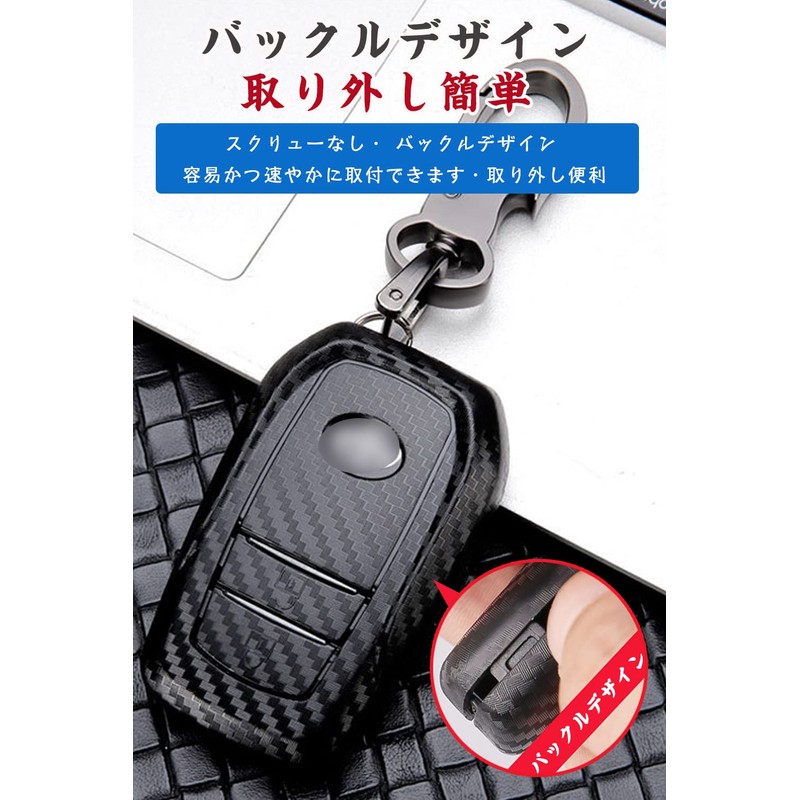 - Material: Carbon fiber; ABS plastic material is non-toxic, non-toxic, lightweight, thin, durable and resilient. The surface is adorned with a distinctive carbon fiber design. Enhances aesthetic and provides the most truest touch Not only does the key case stay in shape but it is also dustproof, waterproof, shockproof, scratch-resistant, and fade-resistant. Simply attach this key case to transform your smart key into a luxury car key