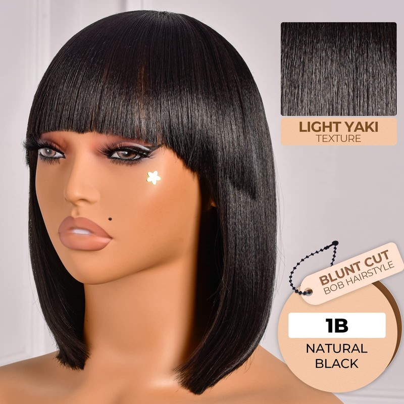 - LIGHT YAKI TEXTURE: Our short bob wigs with bangs are specially processed with light yaki texture so it looks and feels like real hair; super soft & light which makes it easy to brush through.