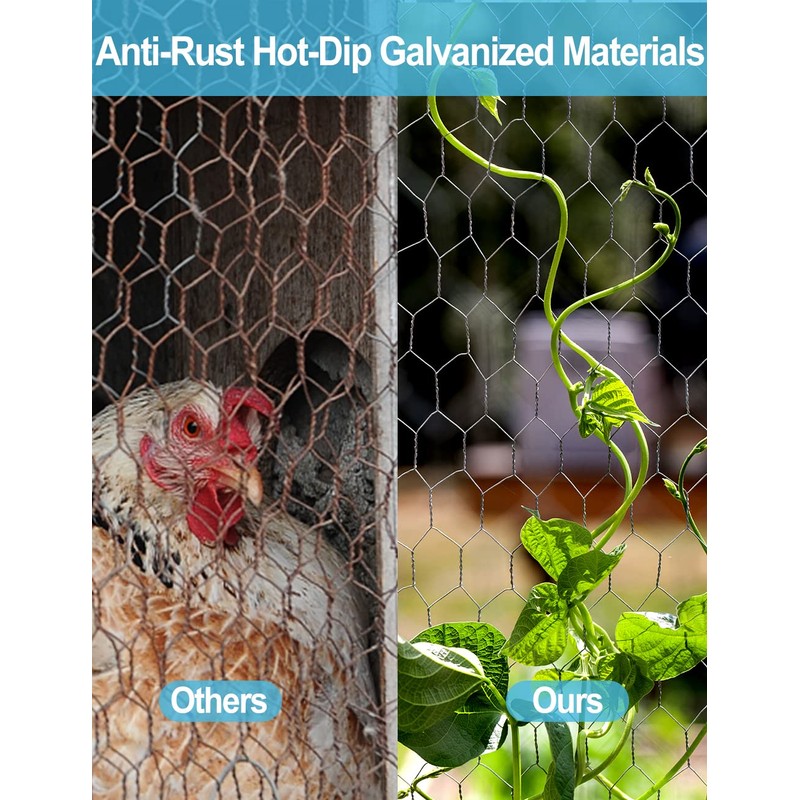 - Sturdy Chicken Wire Fencing: Made of galvanized iron wire with a wire diameter of 0.6mm, designed with double direction hexagonal twist, sturdy and equally spaced, it's more durable and not easy to break.
