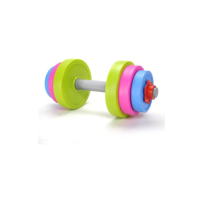 - COLORFUL DESIGN: Vibrant multi-colored weight plates in green, pink, and blue make exercise play more engaging and fun