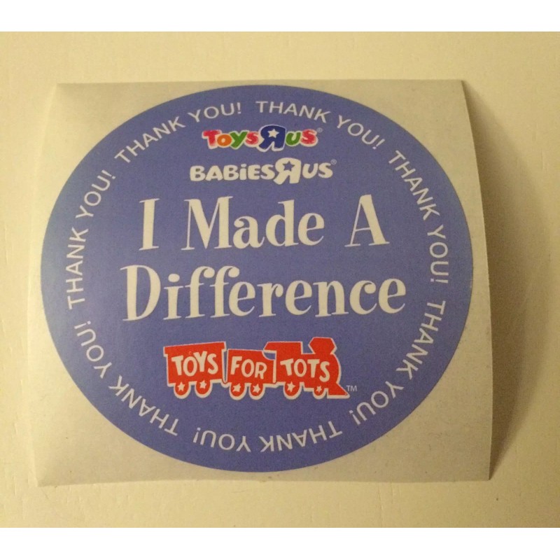 Toys R Us - "I Made A Difference" Toys For Tots - Thank You Sticker
