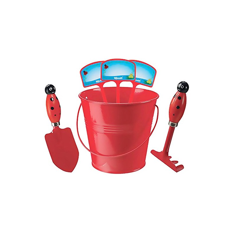Toysmith Kids Gardening Set with Rake Trowel and Plant Markers (Red Ladybug)