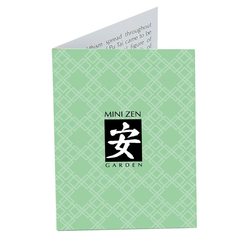 The mini Zen Garden features a 4"x3" Wooden Zen tray, White sand, River rocks and three ceramic figurines. Great desk top novelty gift. Assorted black and rosewood finishes.