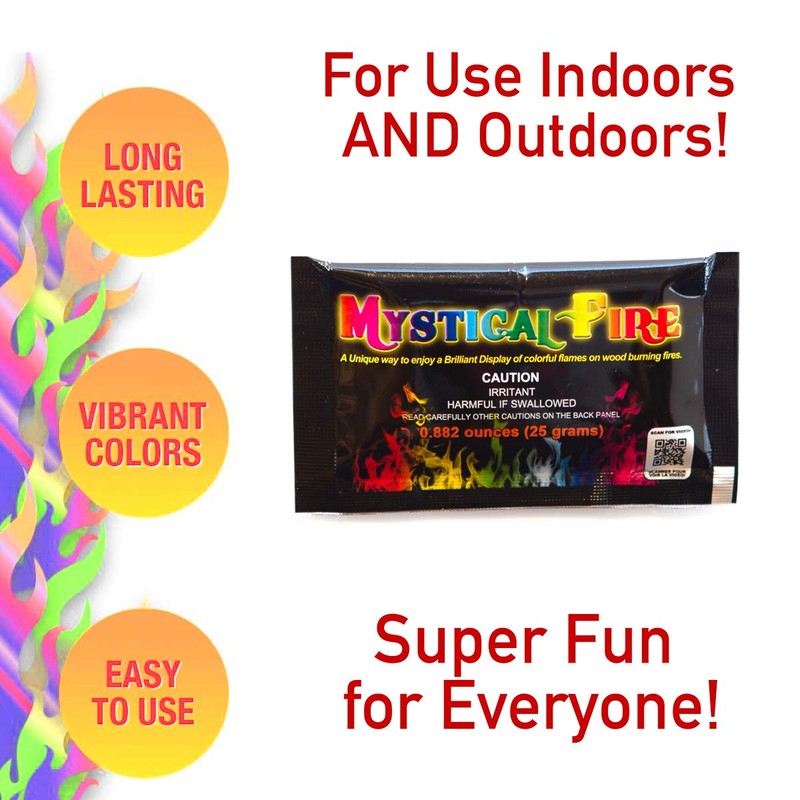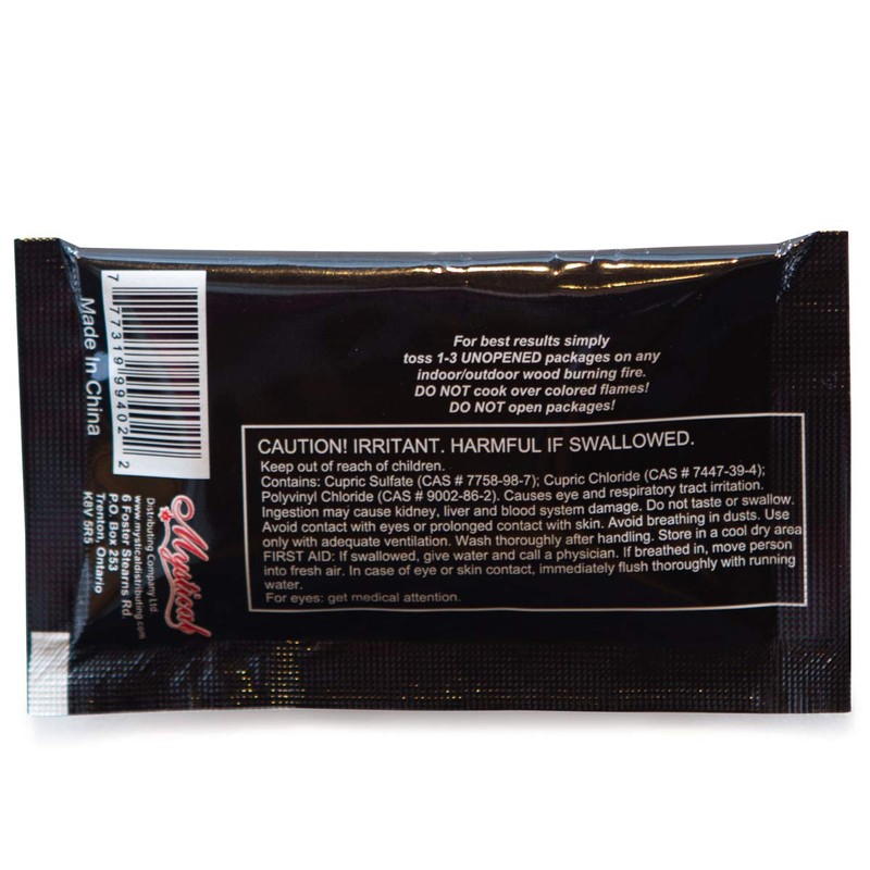 - Throw 1 to 3 pouches into a fire and watch the flames magically change colors