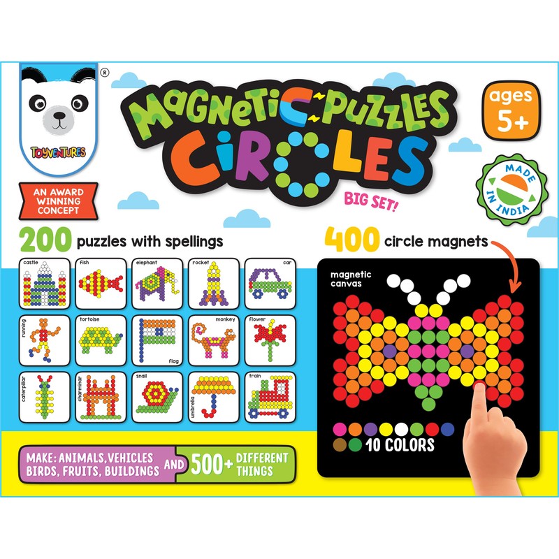 TOYVENTURES Magnetic Puzzle Set – Circles Edition | 400 Colourful Magnets, 200 Puzzle Book, Magnetic Canvas & Display Stand | Creative STEM Toy for Boys & Girls Ages 5+