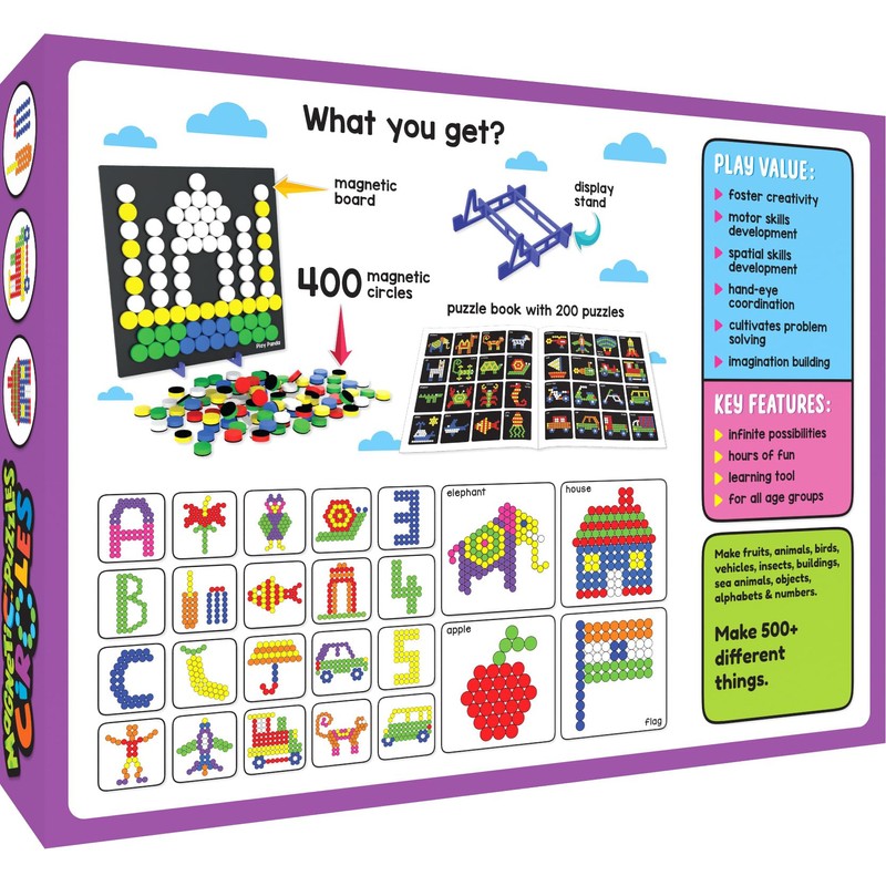 - 🎨 Display & Play Proudly – Includes a big size magnetic canvas and stand for showcasing completed puzzles, giving children a confidence boost and sense of achievement.