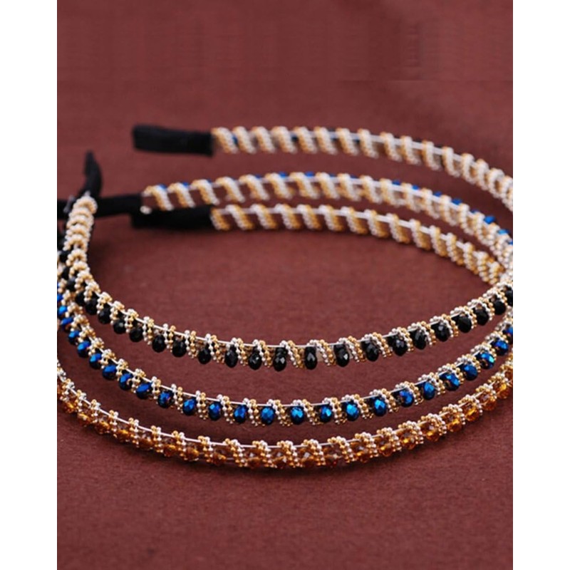 TOZBLEU Fashion Headbands for Women, Pack of 3 Hair Accessories, Fashionable Hair Band, 3 Colours Rhinestone Elastic Hair Band, Non-Slip Prong Headband for Girls Dancing, Party, Daily Wear, Work