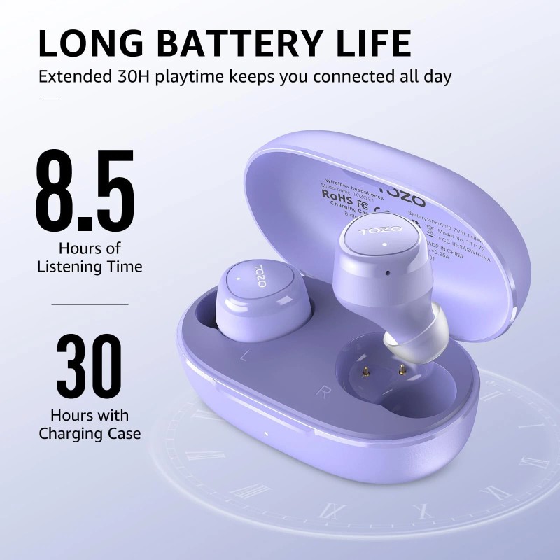 TOZO Wireless Earbuds Build-in Mic 30H Playtime w/ Charger Case, IPX6 Waterproof