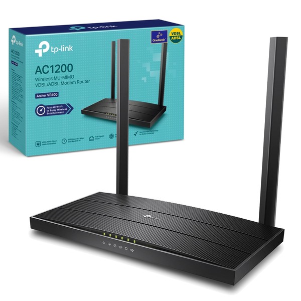 TP-Link AC1200 Wireless MU-MIMO VDSL/ADSL Modem Router, Dual-Band, Wi-Fi Speed Up To 1.2 Gbps, OneMeshTM, Versatile Connectivity, 4 x Gigabit Ports +1x 2.0 USB Port, Easy setup (Archer VR400)