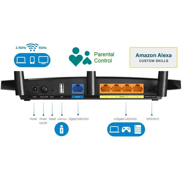 - Router for wireless internet, works with Alexa, compatible with all Wi-Fi devices, 802.11ac and older