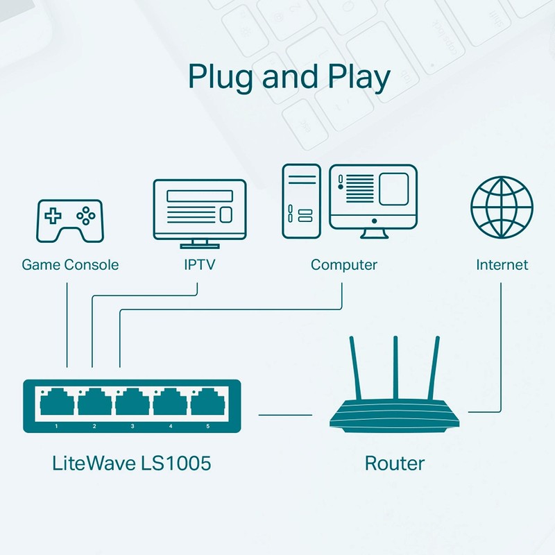 TP-Link LS1005, Switch Fast Ethernet no administrable, 5 * 10/100Mbps Puertos, Diseño de Escritorio, Plug and Play