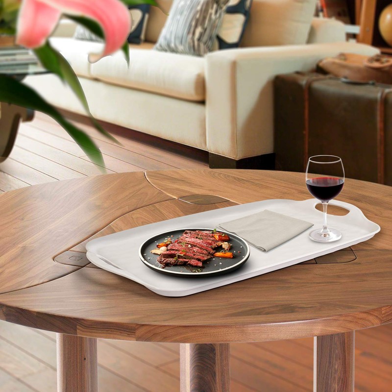 TP Serving Tray with Handles, Large Rectangle Melamine Serving Platter Set of 2, White (19” x 12”)