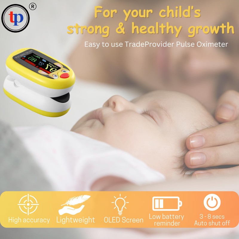 - [ Non-invasive detector ] - TradeProvider Kids Pulse Oximeter, a non-invasive device intended for the spot-check of oxygen saturation of arterial haemoglobin (SpO2). Anywhere and anytime helps track kids, teenagers and adult oxygen saturation and heart rate. NHS accessible, and health services usfeul device.
