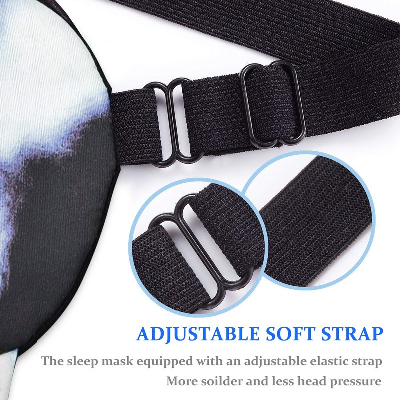 - Fully adjustable Eyeshade : Easy to adjust headband, Flexible and durable to surround your head comfortably, the strap is high elastic and easily will not catch your hair, not move or fall off while you're sleeping, one size fits most