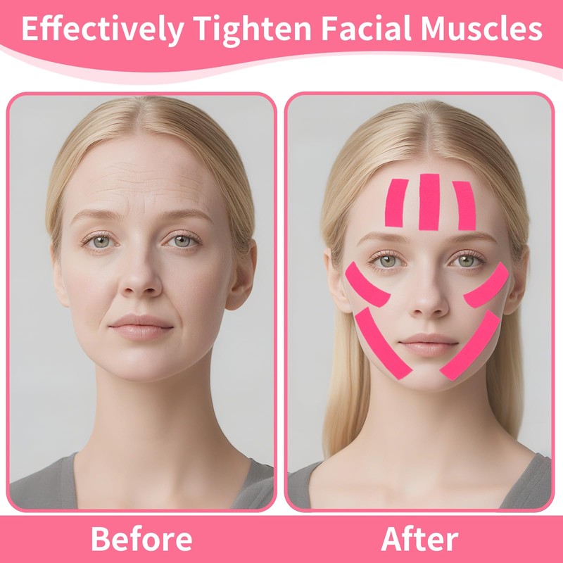 - 【Faltenreduktion】Durch das physische Anheben der Gesichtshaut hilft das gesicht tape dabei, feine Linien und Falten zu glätten, insbesondere in Bereichen wie um die Augen, den Mund und das Kinn, wo Falten häufig auftreten. Lifting stripes gesicht lässt die Gesichtskonturen straffer erscheinen.