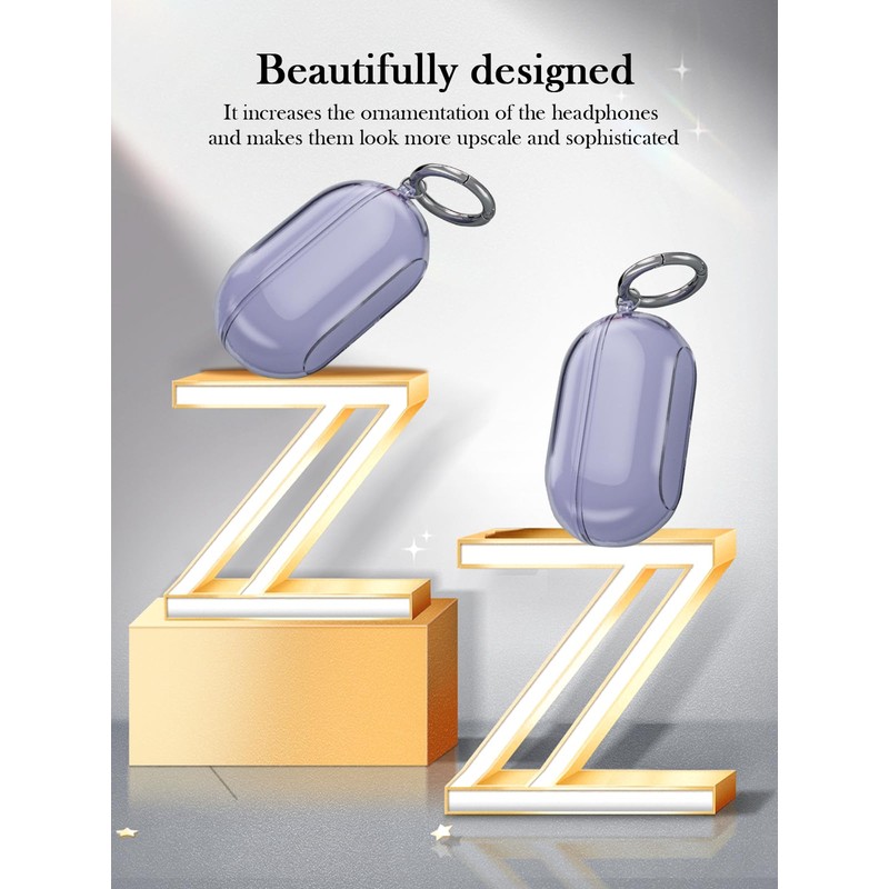 TPU Case Compatible with Beats Solo Buds with Keychain and Cleaning Kit Soft Protective Shockproof Cover for Beats Solo Buds(2024)-ClearPurple