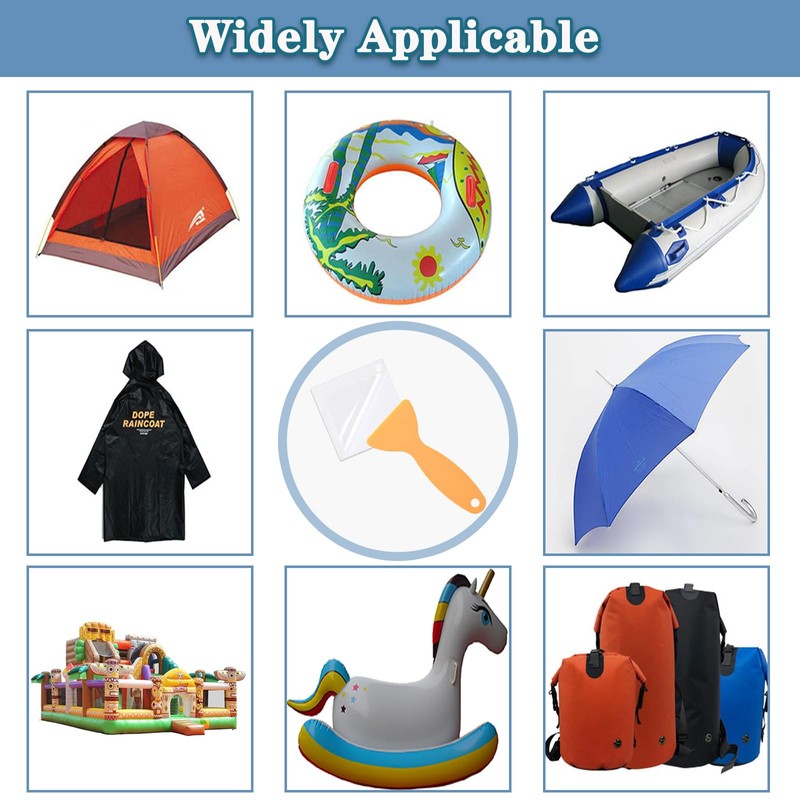 • WIDE APPLICATION ---- Inflatable patch repair kit is suitable for repairing inflatable amusement facilities such as ground swimming pools, swimming rings, inflatable boats, inflatable houses, inflatable beds, can repair small cracks or water leaks, waterproof bags, balloons, etc., can also be used to repair raincoats, umbrellas, tents, canvas, vinyl furniture, etc.