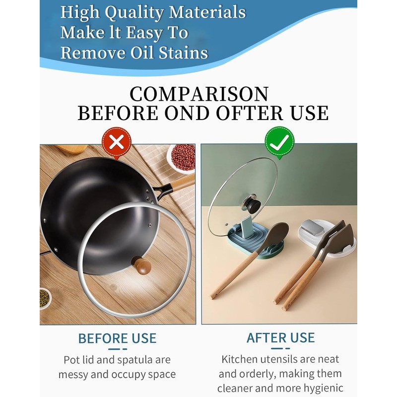 Material The kitchen utensil stand is made of high quality PP plastic and can be used as a pot lid holder and cooking spoon holder.