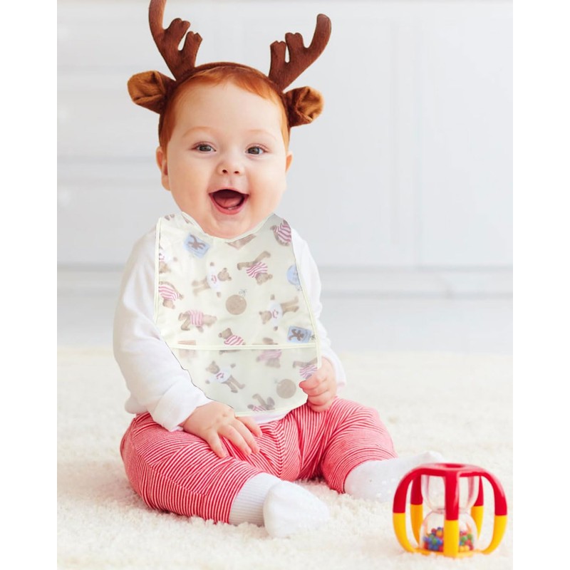 • Waterproof Bibs: These long-sleeved baby bibs are made of waterproof polyester fabric. They are lead-free, PVC-free, BPA-free, phthalate-free and vinyl free. Safe for babies and suitable for infants and toddlers from 6 to 24 months.