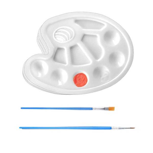 TPZORJX Pack of 4 Paint Palettes - Mixing Palette, Paint Palettes, Painting Palette with 2 Pieces Brushes, for Painting and Crafts (White)