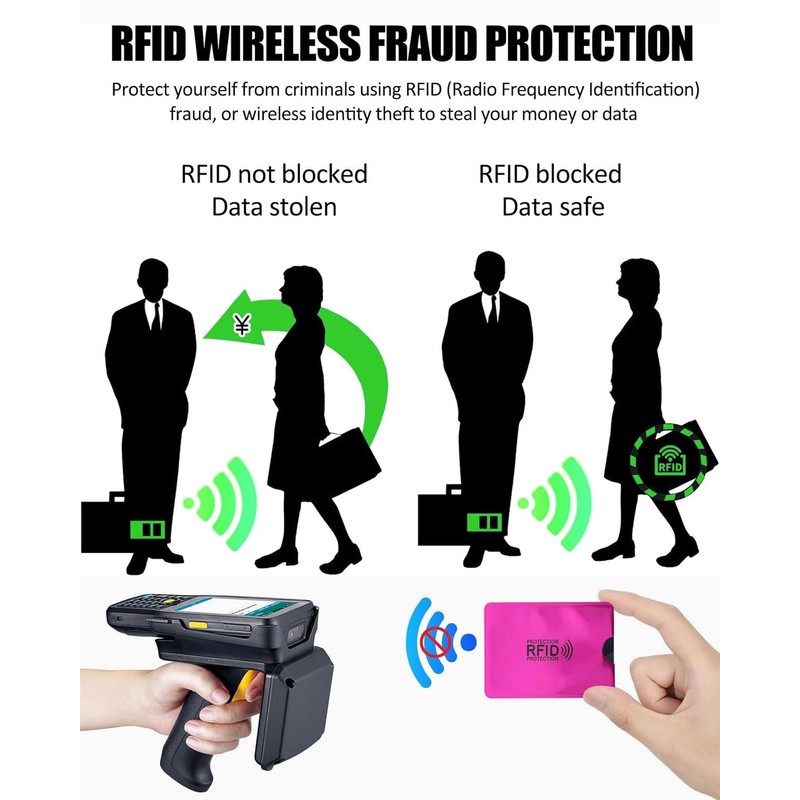 - Waterproof & Safe Material The RFID blocking case is made of waterproof aluminum foil, elegant and slim design, is suitable for wallets and travel wallets, protect credit and debit cards for women and men, facilitate your travel, bring peace of mind to your life and travel security and convenience.