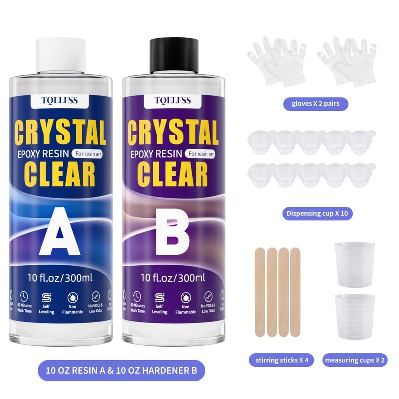 TQELFSS Epoxy Resin 20 OZ, Crystal Clear Epoxy Resin Kit, Fast Curing, Self Leveling, No Bubbles, No Yellowing Molding Casting for Molds, Jewelry Making, DIY Crafts -10 OZ Resina and 10 OZ Hardener