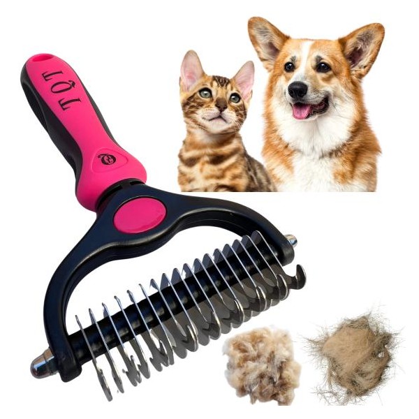 TQT Pet Grooming Brush - Double Sided Shedding and Dematting Undercoat Rake Comb for Dogs and Cats, No More Nasty Shedding or Flying Hair:_Pink
