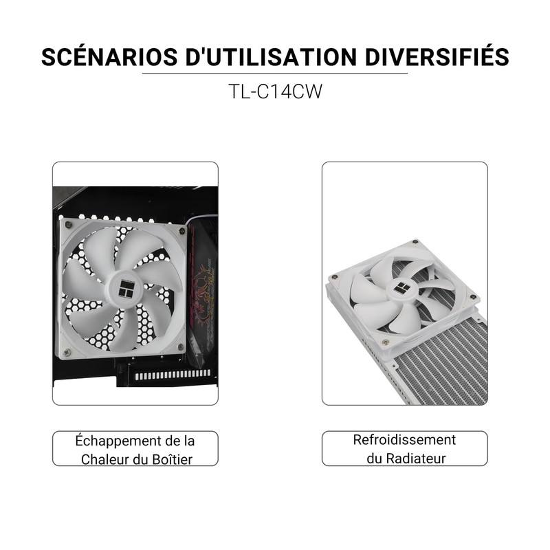 TR TL-C14CW Case Fan 140 mm Quiet PWM Fan for Computers with a Speed of 1500 RPM, White Fan for Cooling the CPU