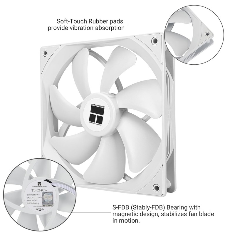 TR-TL-C14CW CPU Fan, S-FDB Bearing Case Fan with 4-PWM Control, Low Noise PC Fan, 140mm Computer Chassis Fan, CPU Cooler Fan|White(TL-C14CW)