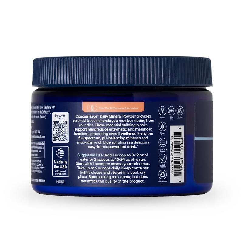 - Daily Trace Mineral Support: Trace Minerals ConcenTrace Daily Mineral Power in Blue Raspberry flavor delivers 700 mg of concentrated minerals per serving for essential mineral supplementation*