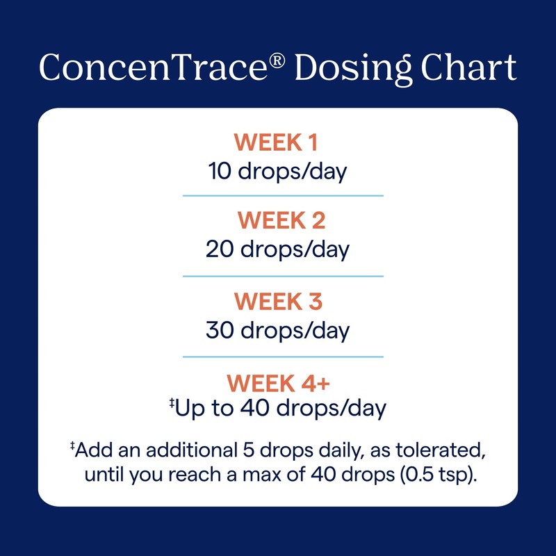 ConcenTrace: Pure, no additives. Add to water or food. Start with 10 drops, increase daily