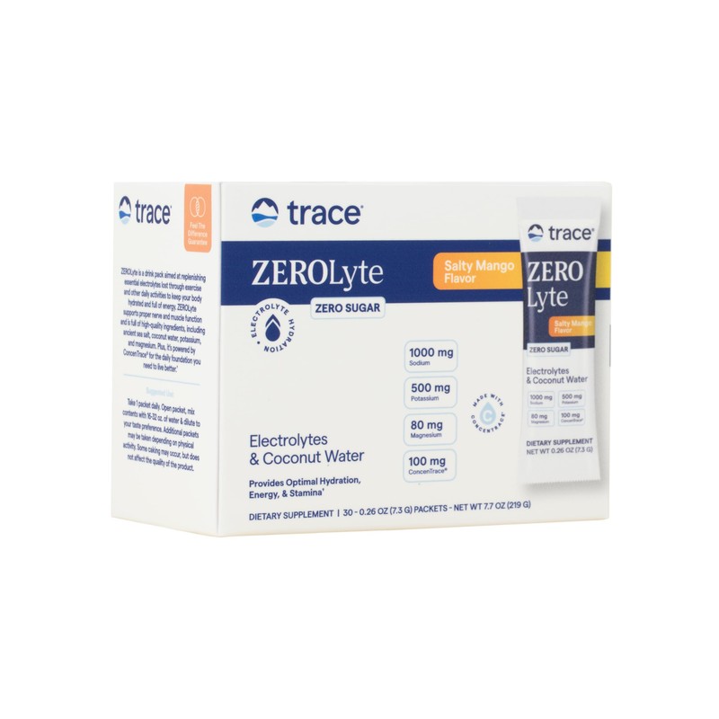Trace Minerals Trace Minerals ZeroLyte - Drink Mix Powder Supports Hydration & Energy - Aids Healthy Nerve & Muscle Function - Support Heart & Digestion Health - Salty Mango, 30 Packets (30 Servings)