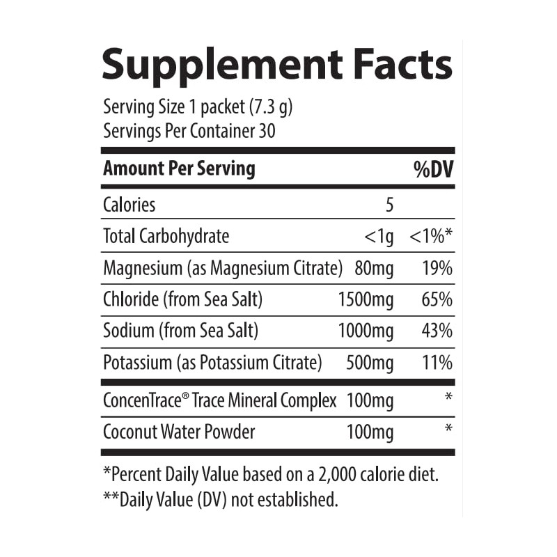 - Natural Electrolyte Formula: These powder drink packets contain ancient sea salt, coconut water, potassium, magnesium, and ionic trace minerals to support nerve and muscle function