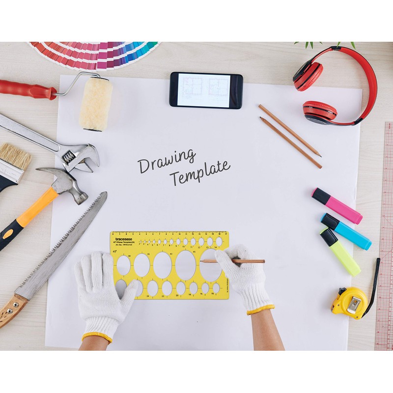 Traceease Geometric Drafting 45° Ellipse Template Drawing Stencil, Designing Template Measuring Ruler