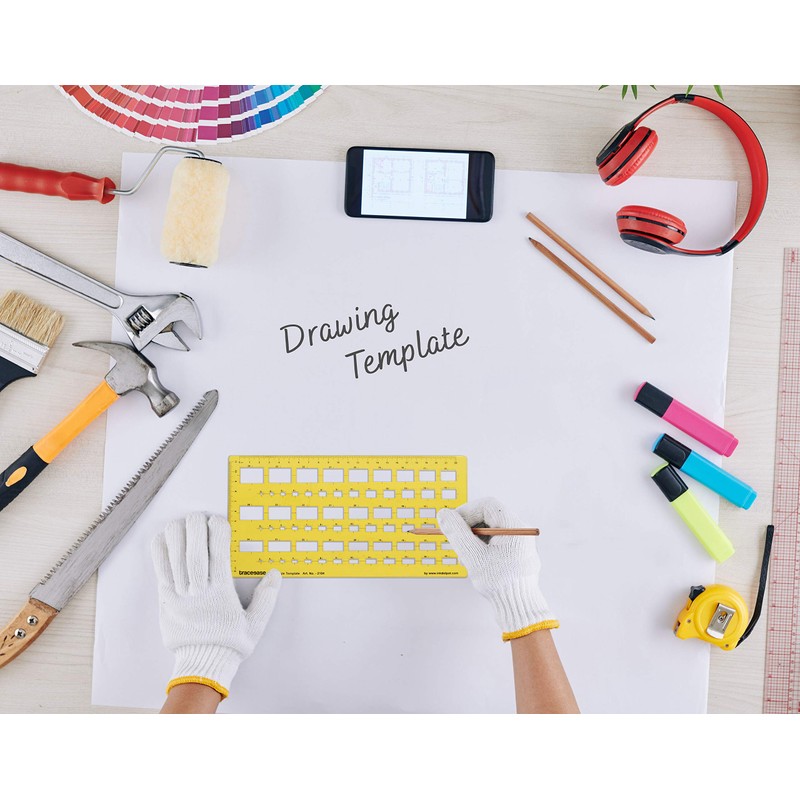 • ✅ GREAT HELP FOR STUDENTS & PROFESSIONALS: The clear yellow geometric ruler templates are great for art design, building formwork, and drawing templates in school, office, home. This versatile stencil allows the user to place it on any surface and draw or cut precise shapes according to their requirements.
