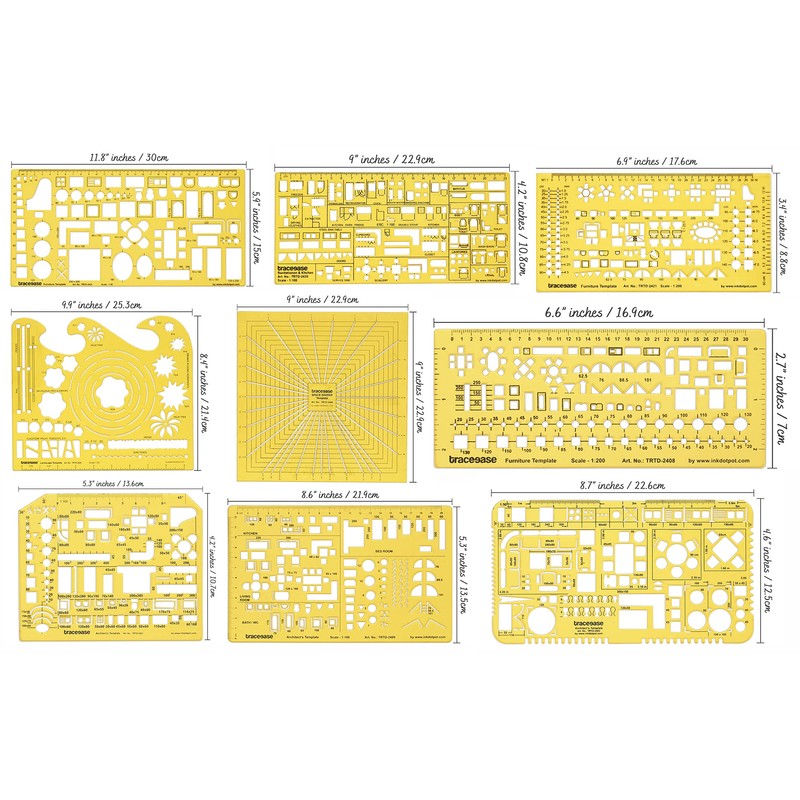 Traceease Lot of 9 Pieces, Architect Templates for Kitchen/Bath/Bed Drafting Tools- Interior Designing Stencils