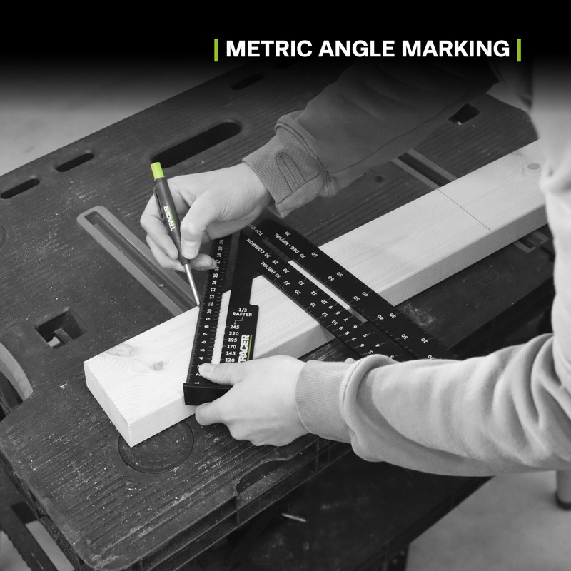 - Quick and precise marking: comes with 3 pre-calculated angle marking guides or achieve easy 0° - 90° marking by pivoting and marking along the long edge.