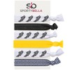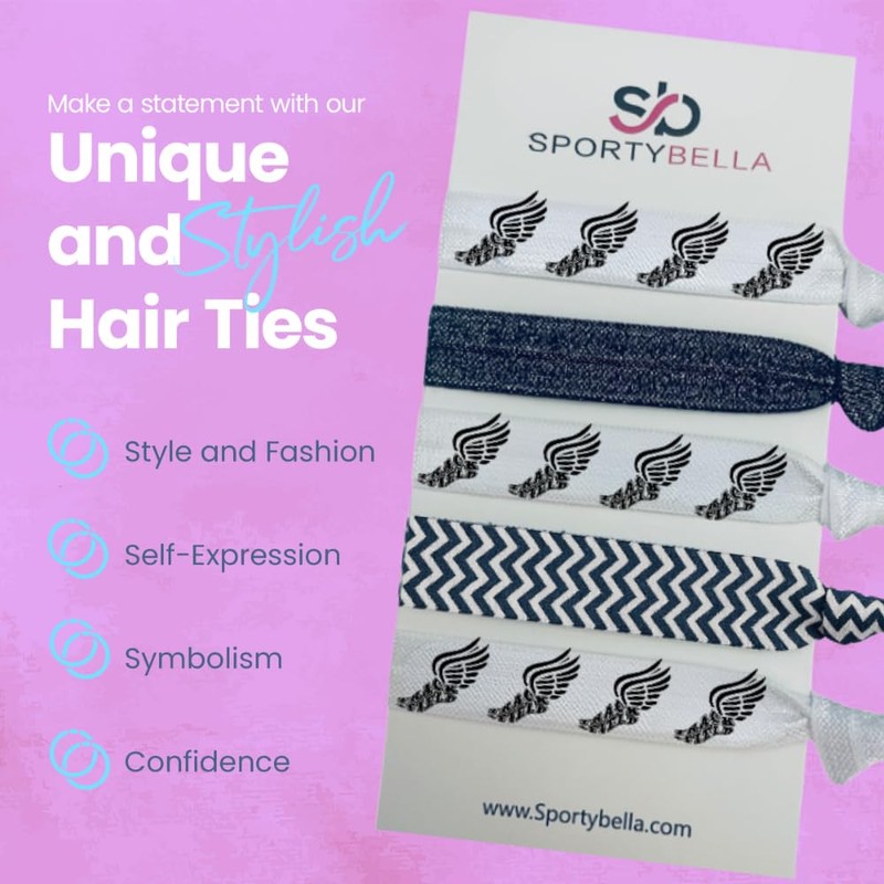 - Package Contents: Includes 6 hair ties – 4 Track & Field winged foot bands, 1 black glitter band, 1 yellow solid band, and 1 chevron pattern tie